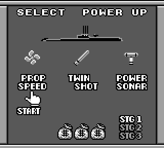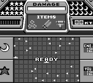 De plus, c'est pas forcément évident. Au niveau le plus dur, y'a du challenge, car le CPU va très vite. En plus il y a deux-trois options sympa pour agrémenter tout ça : un double tir de torpilles, un turbo (l'option indispensable, soit dit en passant), et un sonar amélioré qui rajoute, à la position des navires, leur sens de déplacement (l'option souvent sous-estimée, mais bien plus indispensable que le double-tir si vous espérez vous en sortir avec honneurs aux niveaux élevés). Donc c'est que du bonheur en barre.