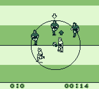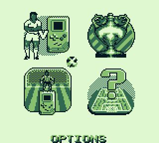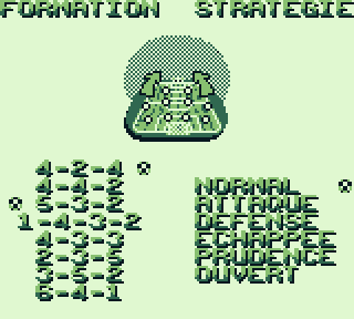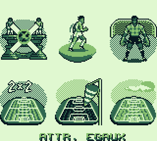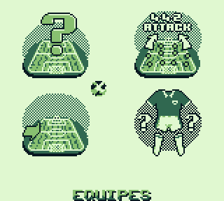 Aller, on tchek ses coéquipiers, on tâte la pelouse, un dernier signe de croix et on allume sa Game Boy sous les ovations du public. Hop, tout ça est très classique, hormis le fait qu'on doit sélectionner avec B, le jeu reprend les normes d'un jeu de foot c'est-à-dire un menu avec Partie Rapide, Tournois, Penaltys et Options.