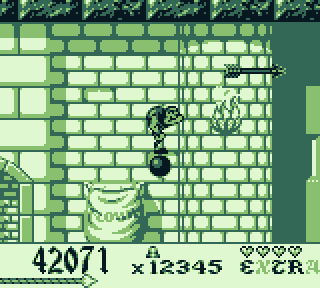 Car le jeu est le petit-fils du Hunchback, le jeu d'arcade ! Il reste donc bien ancré dans son système de scoring, où fruits et diamants vous rapporteront des points, qui vous rapporteront des vies, et probablement quelques bons saladiers de coke, voire quelques filles avec des dents pourries.