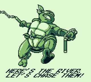 Vous avez les 4 tortues mutantes sous votre contrôle, vous sélectionnez le protagoniste que vous adulez avant un niveau. Chaque héro arbore son arme de prédilection (Leonardo porte son épée, Raphael se bat avec des espèces de grosses fourchettes, plus communément appelées des poignards Saï, Michelangelo est lui armé de ses Nunchakus et Donatello de son fidèle bâton bô ).