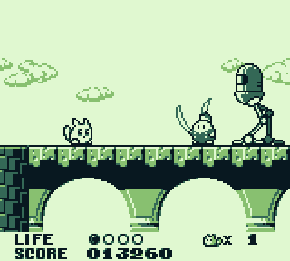 Un écran titre des plus dépouillés plus tard, on découvre l'improbable scénario du jeu. Vous, une chose façon Kirby, répondant au doux nom de Yacopu, doit bien entendu sauver le monde au bord du chao depuis que le grand méchant à volé la plante d'harmonie à votre grand père. Un classique du genre, dont l'objet de quête est néanmoins assez abstrait. Encore un jeu baigné par la douceur des psychotropes des années 90…