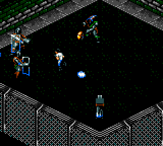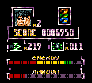 Il dispose d'un certain nombre d'armes avec chacune leurs qualités et leurs défauts. Lance flammes, laser, grenades, mitraillettes, l'attirail est incroyable ! Rarement encore une fois on n'a pu avoir tant d'armes dans les mains sur Game Gear. Alors au début on est comme un fou, et l'on tire partout parce que c'est drôle de faire défiler les couloirs en hurlant « le dernier arrivé dans le bureau du DG paye l'apéro ! » en espérant faire se déclencher un mouvement trivial de joie d'équipe, et en tirant partout. Ce qui nous amène à la principale difficulté du jeu.