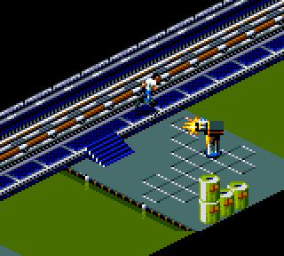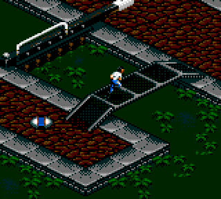 On va donc diriger Bob dans un univers en 3D isométrique extrêmement original pour la Game Gear. La 3D isométrique, on connait, mais rarement sur portable, en tout cas rarement avec brio. Là, au bout de quelques moulinets de pad, on voit immédiatement que l'on est dans du lourd. Bob réagit au doigt et à l'œil (souvenez-vous de la jeune fille énuclée évoquée au dessus), et on se déplace avec une aisance et une précision rarement atteinte dans la ludothèque de la portable couleur. C'est vraiment agréable.