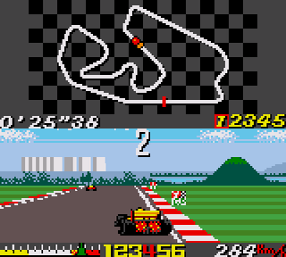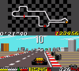 C'était supportable à l'époque, mais, et dieu sait pourtant que la nostalgie m'offre d'habitude un aveuglement suffisant pour gouter avec plaisir à certaines vieilleries, là c'est plus possible. Passer de 200 à 20km/h pour réussir à négocier un virage et éviter le mur consitutué par 2 voitures pratiquement arrétées en plein milieu du circuit, ca va bien 5 minutes, mais pas plus. A l'époque des Outrun, Hang On ou Pole Position, on avait pas trop le choix, mais depuis qu'on a gouté par exemple au F1GP de Geoff Crammond, on aspire quand même à autre chose, même pour un jeu orienté arcade.