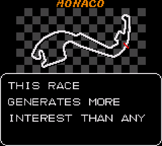 Tiens d'ailleurs, en parlant de Pole Position, vous vous souvenez de la voix digitalisée qui animait la borne avant le début des courses. Et bien, dans Super Monaco GP II, on a aussi droit, et c'est rarissime sur la Game Gear, à de la digitalisation. Enfin, une seule voix digitalisée, disponible aussi depuis le menu des options : celle de ce bon Ayrton, qui, lorsque vous gagnez une course, déclame ces mots d'une voix floue : "FRAN VATU LASSO"...
