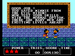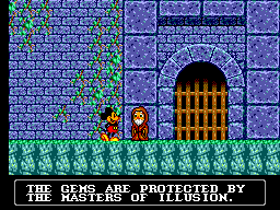 Après "The Lucky Dime Caper" mettant en scène notre canard préféré, j'ai nommée... Angelina Jolie (quoi? celle-là aussi elle est nulle? ah. moi je la trouvais pas mal...), "Castle of Illusion" est donc une nouvelle adaptation Disney sur la 8 bits de SEGA, et pas des moindres vu qu'ici, c'est l'égérie de la firme qui s'y colle (un indice: il a des grandes oreilles noires toutes rondes...)