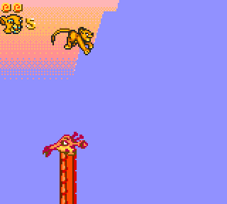 On enchaîne sur quoi ? Sur le tableau d'après dans le film. DOnc logiquement, le rêve psychédélique. Oui, souvenez-vous, le lionceau se fait un trip multicolore sur "être roi". Pourquoi pas. Et bien hop les développeurs en ont fait un niveau. Un vrai cette fois. On virevolte de queue d'hippopotames en têtes de girafes, en passant par les singes baladeurs. Frais. Les couleurs sont volontairement folles, et c'est sympathique. Et tout le jeu sera de cet ordre. On enchaînera les niveaux toujours plus mignons, en passant du magnifique au sombre, en dégageant des émotions vraiment étonnantes pour notre minable petite portable Sega. Graphismes léchés, c'est le Kenya en miniature que l'on a sous les yeux, ce n'est donc pas ça qui entravera votre course folle jusqu'à la mort de votre oncle.