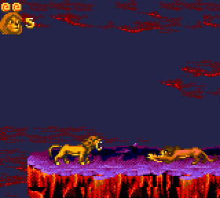 Mon dieu, le temps passe et je m'aperçois que je n'ai pas fait de critique depuis au moins deux semaines. Mon dieu. Plus d'envie, plus d'inspiration, le blanc. Mais la motivation est là, le coeur y est. Quel jeu va me redonner un semblant d'idées ? Il me faut un jeu qui sent "1990", Game Gear root style et autres fantaisies folles qui fleurent bon l'enfance. Va pour le roi lion. Le dessin animé de Walt Disney qui a marqué un tournant avec l'apparition de l'informatique vraiment utile dans un dessin animé va servir à ma thérapie. Donc on se retrouve sur Game Gear avec un bon gros jeu à licence Disney. Soit. Virgin s'y colle. Bon, rien de particulier. Ah si j'allais oublier, je n'aime pas les jeux à licence. Généralement on se retrouve avec un jeu bien merdeux, avec un perso lambda à qui on colle la gueule du personnage de la licence. Ici, c'est simple, on pourrait se retrouver avec un Mario avec une tête de lion. L'appréhension est grande. J'allume ma console "transportable". L'écran est baveux. Mince, j'ai trop joué à l'émulée... Écran titre, musique doucereuse dans les oreilles. Mon dieu mais c'est mimi !