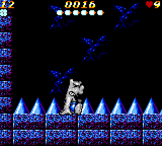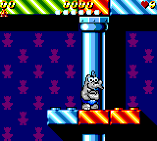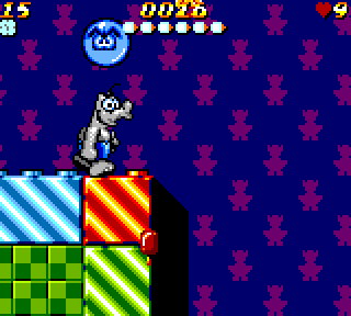 L'animation est sans faille et Bruno réagis au doigt et à l'œil avec une aisance et une souplesse étonnante. Les mouvements sont bien décomposés et l'ensemble est extrêmement fluide. Seul petit point négatif, mais de tout façon inhérent à la majorité des jeux sur Game Gear, cette fâcheuse impression que l'écran n'arrive pas à suivre cette fluidité dans le sauts, c'est-à-dire que le cadrage de la scène est saccadé de manière assez nerveuse, comme s'il n'était pas centré sur le personnage mais plutôt sur ce qui l'entoure. Enfin bon, rien de bien méchant non plus...