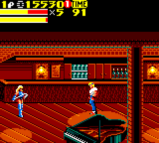 Mais Axel est toujours accompagné de sa partenaire de charme, Blaze. Terminé le look sado maso / cuir rouge et noir dans les ruelles mal famées. En effet, le dernier opus nous a appris qu'à la fin du jeu elle était passée à la casserole dans une ruelle obscure, avec une dizaine de très vilains, qui avaient craqués sur sa robe. Un classique. Quoi vous n'avez jamais eu la vraie fin du jeu ? Ah ah comme vous êtes naïfs. Évidemment qu'elle est encore habillée pareil… C'est l'argument « le beat 'em all c'est aussi pour les filles ». Et oui, le segment de marché visé par Sega était à l'époque inexistant, et c'est encore le cas de nos jours. C'est admirable de viser des marchés qui seront là dans 30 ans, à l'avance. Ça c'est du calcul. Si j'avais été un financier extraordinaire, je dirais que Sega, avec de tels projets, survivra pendant encore des décennies… Mais je n'ose trop m'avancer…