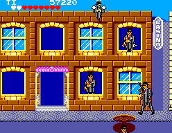 Bref, Gangster Town est un excellent jeu de tir, un des rares à exploiter le pistolet de la Master System, et il serait fort dommage de s'en priver. Bon, ce n'est pas tout ça, mais tonton est en train de ronfler dans le salon, faut que je le traine jusqu'à son lit.