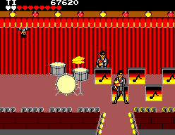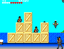 Bon, vu l'état de tonton à ce moment là, je vais reprendre le clavier avant qu'il ne gerbe dessus. Surtout qu'il reste encore 3 niveaux : la ville acte 2, le club de jazz, et enfin les docks. Chacun se terminant par un boss plus ou moins solide. Une bonne partie du décor est destructible, et le jeu est plein de bonnes idées. Par exemple, dans chaque niveau, il y a un objectif de statistiques de tir à remplir : si on l'atteint, on gagne un cœur de plus dans sa barre de vie, sinon on continue comme ça. Il va donc falloir être bon dans les premiers niveaux pour ne pas trop en chier dans les derniers.
