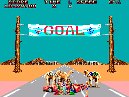 A sa sortie dans les salles d'arcade Out Run caresse l'égo des joueurs exactement où il faut pour rapidement devenir un immense succès. Ferrari rouge pour appâter l'amateur de belle mécanique, superbes pistes sonores variées et longues pour ne pas lasser le mélomane, diversité des décors, des écrans de fin et des animations pour contenter le joueur acharné, belle blonde aux cheveux dans le vent pour… euh… Jacques Dessange. Parfaitement. Vous ne me ferrez pas rentrer dans un débat stérile sur l'objectivation de la femme dans le jeux vidéo. D'autres s'en sont déjà chargé, je perdrais, et comme je suis mauvais joueur la critique s'arrêterai là. Avouez que ce serai dommage (ou pas).