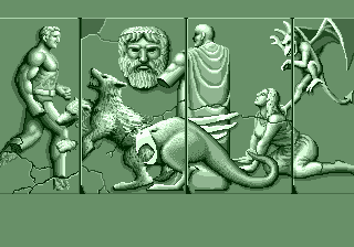Heureusement, dans la Grèce d'autrefois, si on a pas de fusil à pompe, on a des palliatifs. Les hormones animales pour être plus précis. Parmi toutes les bestioles qui vont vous tomber sur le râble, le loup gris (à deux têtes, c'est un minimum) va vous permettre de mettre un peu de protéines dans vos biceps. L'animal est particulièrement riche en substances anabolisantes puisqu'une fois le museau prestement corrigé il vous lâche une sorte de... heu... de quoi du reste ? D'aucun y verront une représentation miniature de Saturne (la planète, pas le dieu) tandis que d'autres y verront un logo d'une quelconque entreprise des années 80. Peu importe, l'essentiel est que le bidule en question vous charge comme un vainqueur du Tour de France et gonfle vos petits muscles, vous permettant ainsi de boxer du vilain avec plus d'efficacité. Résonne alors un splendide : Powwwwer Up ! du plus bel effet, avec ce délicieux écho qui résonne en tout lieu, même si vous étiez au beau milieu de la Beauce. Au passage, le théorème de l'incroyable Hulk se vérifie ici : au fur et à mesure que votre beau grec prend du volume, ses vêtements se déchirent, pour ne finalement plus couvrir grand-chose. Sauf bien sûr son entre-cuisse, pudiquement masquée par un morceau de tissu incroyablement élastique. Notre Adonis gonfle, gonfle, jusqu'à un certain point où vous ressemblez trop à une bouée vivante pour continuer ainsi.