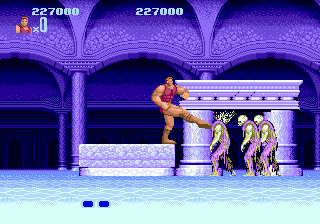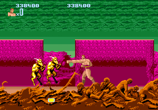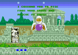 Il est de ces jeux qui sont à jamais attaché à une console, sans que l'on sache parfois trop pourquoi. Pour beaucoup, Altered Beast est celui par lequel toute une génération a découvert la Megadrive. Qui n'a pas passé son mercredi après-midi dans un Auchan ou un Conforama pour tapoter sur une manette à trois boutons pendant que les grandes personnes étaient occupées à pousser un caddie ou contempler des étagères en mélamine ? Vendu en bundle au lancement de la machine, il a été la vitrine de la génération 16Bits selon SEGA. Pour d'autres c'est avant tout cette phrase passée à la postérité : "Wiiise fwom youw gwave !". C'est de l'anglais. Vous en doutez ? Normal, c'est l'anglais que l'on parlait à l'époque de la Grèce Antique. Ce qui explique peut-être la qualité crapoteuse de la digitalisation. Mais revenons à nos Plutons et voyons ce qu'il reste de ce jeu une vingtaine d'années après sa sortie.