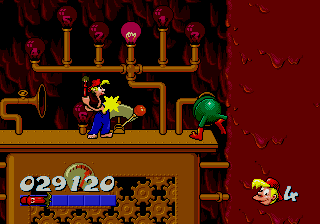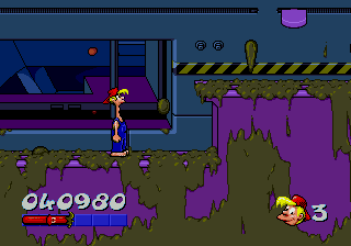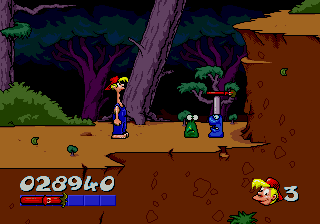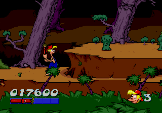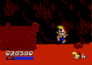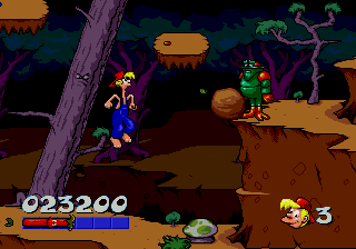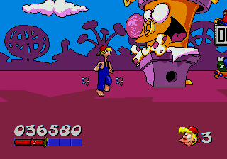 Tout ce petit monde est maintenu en un parfait équilibre où pas un pixel ne déborde. La transfusion depuis l'Amiga est d'ailleurs presque sans goutte perdue, si ce n'est la disparition heureuse des risques de disquette foireuse ou de Gourou Meditation en veux tu en voilà. Pan dans ta gueule. Cet instant est sponsorisé par l'Amicale Sartoise de la Guerre des Supports Disparus. Bref, nous avons entre les mains un bien bel objet. Ce jeu est beau, ni plus ni moins. Ou alors un peu plus mais juste un fond, j'ai de la route à faire. Splendide même, si je m'écoutais. Du nectar pour les yeux. Dans l'hypothèse où vous êtes une abeille mutante. En un mot comme en 6 décimales de Pi, ce jeu est une réussite technique. Voilà, c'est dit. Le monde de l'Amiga nous offre ce qu'il y a de mieux. Franchissons même d'un petit bond la barrière de la retenue et clamons que ce jeu est un de plus beaux que la Mega Drive nous ait offert. Oui. J'accuse. Enfin, j'affirme plutôt, faute d'officier juif sous la main. L'ensemble est de haute tenue, tant dans l'univers créé que dans sa réalisation technique. Et les musiques, bien que discrètes, sont parfaitement dans le ton (un plus par rapport à la version micro qui elle est muette et pan dans la gueule bis). Le ton, parlons en d'ailleurs. Il constitue le sel de ce petit trésor. Sa qualité première est sa singularité par rapport aux standards de la console. Si vous n'avez pas sauté des lignes et que vous avez résolu vos problèmes d'alcool, vous aurez gardé à l'esprit que les racines Amiga de Bubba 'n Stix. Rien d'étonnant à ce que l'on retrouve une patte, une signature symptomatique des productions de cette époque et de ce support. A titre personnel, j'y trouve des similitudes avec la bande dessinées Kid Paddle, notamment avec ses monstres horriblement rigolos -on a la littérature que l'on mérite.