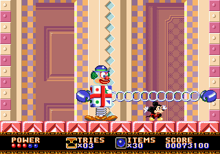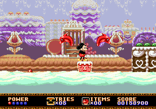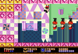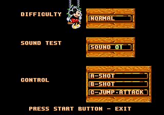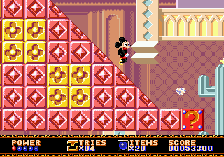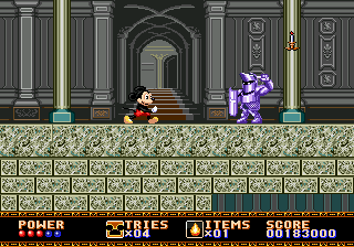 Castle of Illusion est particulièrement déprimant. Ainsi, si vous voulez faire essayer le jeu à votre petit cousin pour le convertir à la dame Megadrive, vous lui lancerez instinctivement une partie en Practice : peu d'ennemis, mais trois niveaux disponibles seulement sur les cinq prévus. Impossible donc de finir le jeu dans ce mode de difficulté. Votre cousin finira donc frustré à vie, et en résultera un nouvel abonné à Gti Club Magazine dès ses 14 ans.