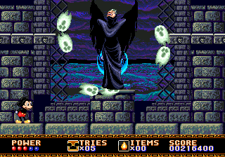 Les sept gemmes en poche servent enfin à créer un pont arc-en-ciel (...) entre le balcon du château et le grand donjon où se déroulera le combat final. La sorcière vous attend, et parait plus impressionnante que lors de la séquence d'introduction. La faute au Maitre de l'Illusion qui fait définitivement du bel ouvrage. Quant à Minnie, elle observera la scène depuis la bulle où elle est enfermée, en plein milieu de la salle. Vous l'aurez toujours à l'œil, ses cris et ses gestes désespérés ne pouvant que vous encourager à la sauver coûte que coûte.