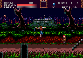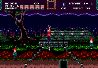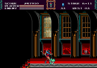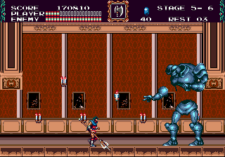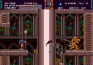 La Megadrive a bien compris que pour rivaliser avec sa Nemesis, il fallait la battre sur le terrain qui lui avait toujours souri : la vitesse. Niveau graphismes et musiques, en effet, à côté de Super Castlevania IV, c'était pourri d'avance, alors on va carburer au super et enfiler ses baskets rouges et blanches. Avec tout de même quelques perles techniques, surtout niveau animation, dans les coins.