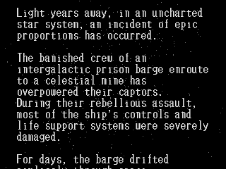 Cosmic Carnage n'est pas un jeu. C'est une sinistre farce, un éclair de démence de programmeurs que la raison a depuis longtemps quitté, un odieux bubon agressant les sens, la sentence d'un Dieu en colère. Il volera votre vie et dévorera votre âme. Cosmic Carnage n'existe pas. Ce test non plus. Vous n'auriez d'ailleurs jamais du lire cet article. Fuyez, fuyez tant que votre esprit n'a pas sombré dans les tréfonds d'une folie noire. Cognez-vous le crâne avec le dernier Bernard Werber jusqu'à ce que vous ayez oublié les quelques paragraphes que vous venez de lire. Tout ceci ne doit pas laisser la moindre trace.