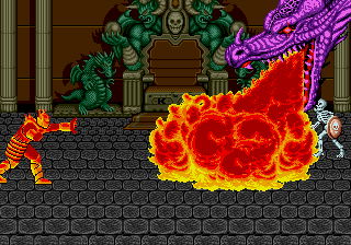 Tout ça pour dire qu'il vaut mieux ne pas réveiller des légendes telles que Golden Axe. D'une part parce que ça lui permettra de rester à jamais dans nos cœurs de vieux cons aigris par la vie comme le jeu d'arcade où l'on s'est abîmé les mains étant jeunes, précipitant ainsi le syndrome du canal carpien. D'autre part parce que certains jeux sont comme Alain Delon : ils vieillissent mal. Voyons voir de quoi il retourne en décortiquant la conversion sur Megadrive de cet ancien hit.