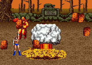Au final, j'ai envie de dire que Golden Axe est un jeu usé. Des graphismes à la rue, un gameplay antédiluvien qui certes possède un certain charme, mais voilà quoi. Il était peut-être excellent en 1989, mais depuis que d'autres beat‘em all tels que Streets of Rage sont passés par là, il n'en reste plus grand'chose. Comme je le disais plus haut, il vaut mieux ne pas réveiller certaines légendes et garder intacts nos souvenirs. Essayez-le quand même, ne serait-ce qu'une fois, ne serait-ce que par devoir de mémoire.