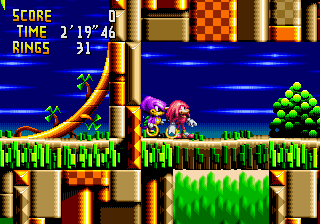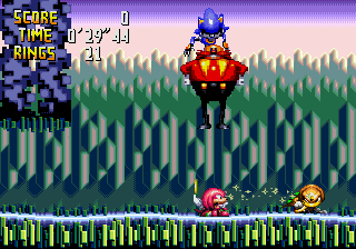 Cet opus nous permet de nous tâter à un gameplay totalement original et novateur, puisque nos deux héros sont reliés par une sorte de champ de force. Au vu des graphismes de cette version et aux décors du niveau (proche de Metropolis Zone), on peut en déduire sa parenté avec Sonic 2... Les premiers tests auraient donc eu lieu avant le développement de Sonic 3? Comme toute l'histoire des Sonics sur MegaDrive, cette Rom comporte son lot de mystères. Ce qui est sûr, c'est que SEGA n'a pas travaillé pour rien. Puis Sonic 3 sort, et son extension Sonic & Knuckles suit. L'âge d'or de Sonic retentit, et le succès fut tel qu'on a du inventer le 5.1 pour entendre la satisfation des fans (y compris de moi même). Mais de là à dire que c'est l'ultime jeu de la Sonic Team sur cartouches? Non vous n'y êtes pas! Il y en a eu un autre.