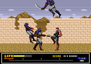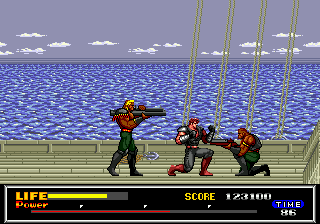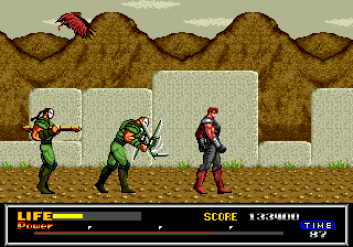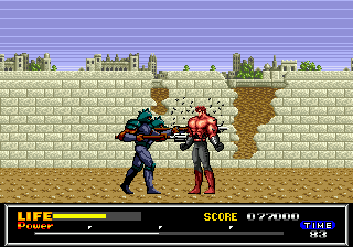 « J'avance, j'appuie sur A. Ou B, tiens, pour changer », histoire de tuer les mêmes gars que dans le premier niveau, mais colorisés différemment. Même pas une once de difficulté ou d'originalité, il faudra attendre un peu pour trouver un peu de variété. Et c'est encore beaucoup dire, puisque le clonage et les costumes de chez Michou semblent être courants dans ce futur apocalyptique. Vivement.