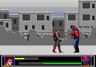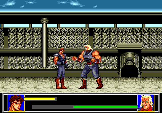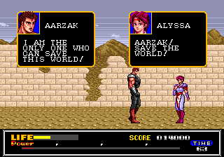 A vrai dire, le jour où j'ai acheté ce jeu, je ne connaissais rien de Ken. Je n'en sais toujours pas beaucoup plus maintenant, d'ailleurs. Ou, du moins, je ne suis pas sûre qu'il faille croire ce que j'ai appris en jouant à Last Battle. Pourtant, le long texte défilant au début de ce beat'em all aurait dû m'enseigner nombre de choses. Mais que veut-il seulement dire ? Que désigne-t-il ? Cette introduction trop verbeuse pour être honnête n'a rien à faire ici. Et comme si ce n'était pas assez ridicule, je suis prête à parier que même un anglophone rira face au semblant de langue de Shakespeare que balbutie ce jeu.