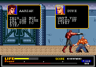 « Legend of the Final Hero » (ahahah) apparaisse. Maintenez appuyé A+B+C et pressez Start pour choisir de continuer un des chapitres déjà entamés, et continuer le carnage. ~