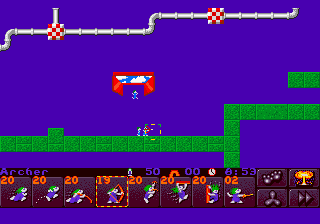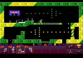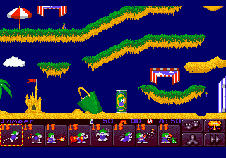 Chaque mini-monde est constitué de 10 niveaux, à la difficulté progressive. au début de chaque monde, vous disposez donc de votre tribu de 50 lemmings, à acheminer au drapeau de chaque niveau. Mais attention: seul les lemmings que vous aurez sauvé passeront au niveau suivant. Aussi, il faut faire bien attention à sauver le maximum de lemmings pour éviter de se retrouver bloqué par manque de "main d'œuvre".