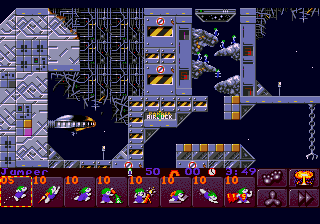Autre originalité du jeu: le choix des actions possibles. Dans le premier épisode, seules 10 actions étaient possibles: ici, il y en a 50. Certes, beaucoup se ressemblent, mais le fait d'avoir le choix entre plusieurs manières, par exemple, d'abattre un mur relance l'intérêt de par la diversité des animations des personnages: ils piochent, bêchent, tirent à l'arc, sautent à la perche, brûlent, tirent au bazooka, au mortier, s'élèvent en ballon, font du canoë, du surf, du parachute, de la course etc. Nouveauté: le mode practice, dans lequel on peut s'initier et s'entraîner aux différents maniements des diverses actions dans 4 niveaux, souvent animés, sans drapeaux, dont le seul intérêt est d'envoyer au casse-pipes vos lemmings-éprouvettes après utilisation. En revanche, écrasons une petite larmichette à la mémoire de la disparition du mode 2 joueurs, qui, à voir la qualité générale du jeu, aurait été un grand moment de délire.