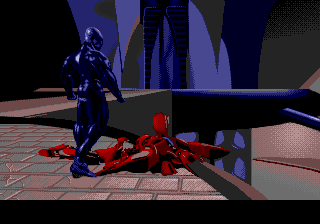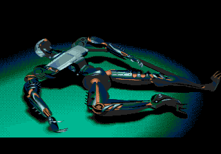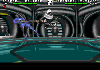 Oui, sortir victorieux des combats dans ce jeu reviens à nager la crawl avec des chaussures de ski. Un chemin de croix, la pénitence des impies, un furoncle au cul lors d'un concours d'équitation. De ma gorge puissante monte le long cri de guerre de l'homme des salons : "putain de bordel de merde de robot à la con, tu vas te battre, chier !". La moindre subtilité, le moindre sens tactique vous est implacablement sucré. On vous remplace tout ça part une pathétique pantomime régie par la main aveugle du chaos. J'ai vérifié par deux fois si ma manette n'était pas mal branchée. On agite les bras et les jambes tant qu'on peut en priant les dieux de la cybernétique d'atteindre l'espèce de taille-haie qui tente d'en faire de même en face de soi. On pense plus à deux sauterelles dans une poêle à frire qu'à un affrontement en règle. Des bruits courent au sujet de la possibilité de réaliser des coups spéciaux. Rien n'est moins sur. Je n'ai jamais réussi à sortir de cette marionnette à la con autre chose que son grotesque papillonnage de base. Dès lors, le nombre ridicule d'adversaires que vous aurez à rencontrer s'apprécie sous une autre perspective. Parvenir à vaincre les 7 marionnettes dont la pouffiasse anodisée finale relève de la gageure de haut niveau.