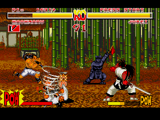 Hit des bornes d'arcades aux côtés de Street Fighter et autres joyeusetés, Samurai Shodown est un jeu de combat à l'arme blanche, histoire de changer un peu.