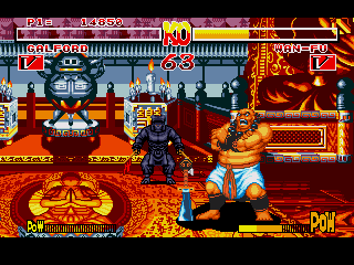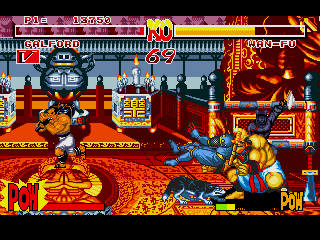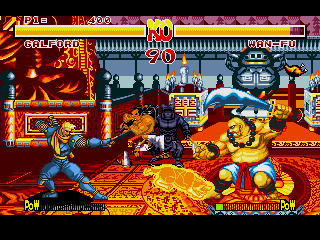 Graphiquement, c'est un régal, on est quand même une adaptation ultra bien foutue d'un jeu d'arcade, donc de gros sprites bien jolis pour les combattants et des décors super classes avec des éléments destructibles (oui, le tonneau qui se fend en deux lorsque un des mecs le frappe avec sa grosse boule).