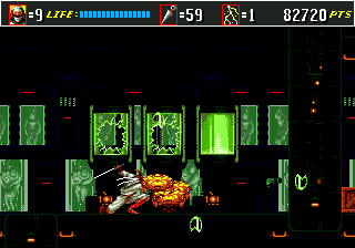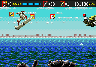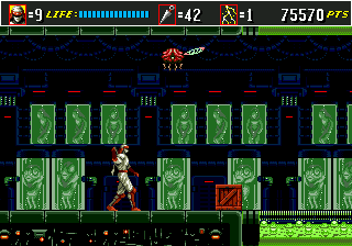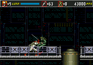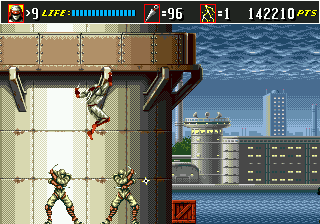 J'ai remarqué un truc amusant dans ce jeu: au fil des niveaux, on s'aperçoit que les programmeurs se sont nettement inspirés des autres classiques de chez Sega. Exemples: une partie du niveau 4 (sur les docks, dans la jungle de tuyaux) rappelle l'un des niveaux de "Sonic 3", ainsi que la forteresse volante de la fin qui semble appartenir au Dr Robotnik lui-même; et puis le niveau 3 (l'usine gênétique) fait furieusement penser au niveau 7 de "Streets Of Rage 2". Toutes ces références, volontaires ou pas, montre bien que "Shinobi 3" est un pur jeu Sega, un vrai, unique, sorti du même moule mystique que ses confrères.