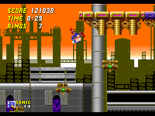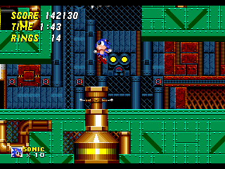 Metropolis Zone (3) : un mix de plusieurs zones, avec les flèches d'Aquatic Ruin, la lave de Hill Top, les bumpers de Casino Night et le look metallique de Chemical Plant. Assez chiantes avec ses ennemis en étoiles, elle comporte d'excellentes idées comme de prendre Sonic pour une clé de 12.