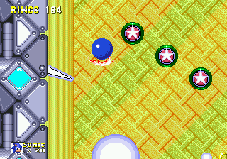 Dans le second, on est dans... la zone bonus de Sonic 1 ! Souvenirs, souvenirs... Comme avant, si on touche un panneau « goal » la sortie est à nous. Ainsi que la honte de la défaite.