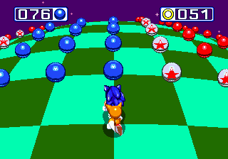 La dernière zone est en 3D et on y arrive en touchant un anneau géant caché dans le niveau. Dans un niveau en pseudo-mode7 on doit récupérer toutes les boules bleues (le premier qui fait une blague vaseuse incluant « ma mère » et « boules bleues », je lui fais bouffer ses dents par l'anus) et tous les anneaux pour gagner une Chaos Emerald.