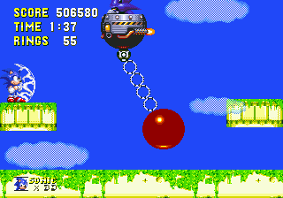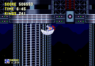 * Death Egg Zone : LA zone galère : changement de gravités, piège vicieux, et à la fin un énorme Robotnik en 3 parties, bien pénible à bousiller… C'est la dernière zone pour Sonic si vous n'avez pas toutes les émeraudes. Et donc que vous être un looser.