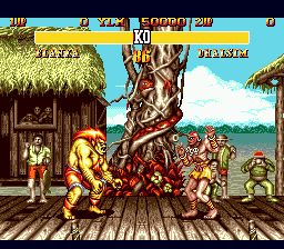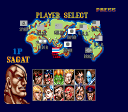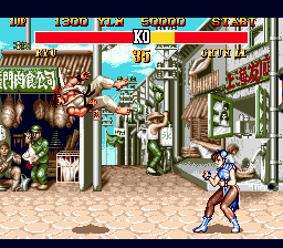 Judo, sumo, kung-fu, lutte, boxe-thaï... On a le choix. Les combattants sont tous plus folkloriques les uns que les autres, et c'est ce qui apporta beaucoup au culte Street Fighter II : les personnages sont hauts en couleurs et possèdent chacun leur style et leur âme propre. Difficile de ne pas trouver son perso favori parmi les 12, sauf si vous êtes une féministe car le sexe faible n'est pas représenté : en voyant Chun-Li (bête à fantasmes de beaucoup de joueurs, y compris moi (NDLR : euh bon, moi ça va merci)), la seule nana du jeu, se battre, on se dit qu'elle fait plutôt partie du sexe fort...
