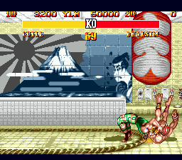 Et sinon? Bah rien de bien neuf: les décors sont superbes, parfaitement à la hauteur de la grande rivale. Les couleurs restent bien flashs mais le tout est super lisible. L'animation (qui est quand même l'un des points forts du jeu) ne souffre d'aucune faille, sauf bien sûr si l'on joue avec une manette 3 boutons. Histoire de quand même faire baver les "collègues" du gros N, Capcom a eu la riche idée de rajouter 4 étoiles de plus pour le mode Hyper, soit 12 niveaux de vitesse assez impressionnants: au niveau max, à vous les parties de 3 secondes!!!