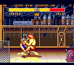 Bref, un bon jeu de machos. Amitié/rivalit virile entre Ken et Ryu (homos?), masse de testostérone russe avec Zangief, paquet de graisse (Edmond Honda) contre squelette ambulant (Dhalsim), drag-queen Brésilien(ne) avec Blanka... Bref, que du beau monde. Environ 3 coups spéciaux par persos, c'est pas mal. Sauf que... la manette Megadrive n'étant dotée que de trois boutons, il faut basculer entre les coups de poings et de pieds en appuyant sur Start. Chiant. MAIS les éditeurs du jeu ont pensé à tout puisque la sortie de SF2' a entraîné la création d'un pad 6 boutons assez sympathique qui entraîna le développement de jeu utilisant 6 boutons (comme Streets of Rage 3).