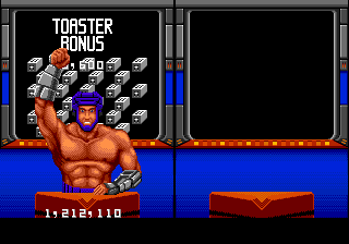 Pour vous donner un point d'ancrage, Super Smash TV c'est le carrefour entre Running Man et le Prix du Danger. Une impitoyable chasse à l'homme dans un environnement futuro-kitsch que seules les années 80 pouvaient nous offrir sur un plateau de plexiglass. Paillettes, strass et mutants. Le concept, les jeux du cirque passés à la moulinette MTV. Survivre ou mourir devant l'oeil jamais rassasié des caméras. Des arènes, des armes et votre paire de burnes, rien d'autre. Vous n'incarnez pas un gladiateur pour rien. Et un gladiateur de la manette, c'est ce que vous allez devenir, si vous voulez vivre. Un dur, un tatoué, celui qui est en première ligne lors des défilés de la CGT et mange des cordons-bleus 5 jours après la date de péremption. Parce que vous allez en chier toutes les larmes de votre corps. Oh oui mes petites salopes.