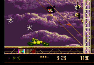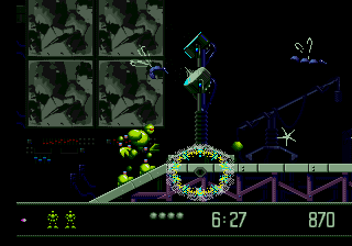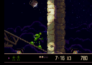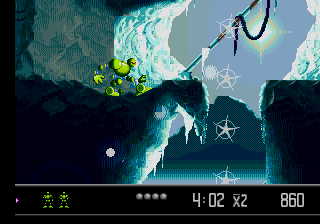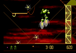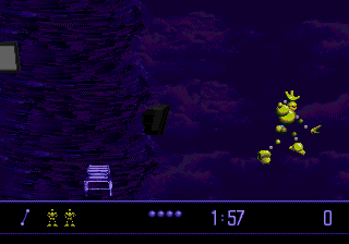 Si la succession des générations de consoles nous a appris quelque chose, c'est bien que des pépites peuvent faire surface dans la ludothèque d'une machine lorsque celle-ci se retrouve poussée au placard par sa remplaçante. Elle aura un sursaut d'orgueil quand elle se voit acculée par la nouvelle génération. Et tout le monde sait que c'est souvent désagréable de se faire acculer. Une console sentant sa fin proche peut offrir ses meilleurs jeux donc. Tenez, prenez par exemple la 32X qui... non, attendez, mauvais exemple. Illustration plus noble : la Megadrive. Au crépuscule de sa carrière, la glorieuse 16-bits de SEGA s'est démenée comme un diable pour flatter l'oeil et la main du joueur avec de véritables perles. Et Vectorman fait partie de ces performances.