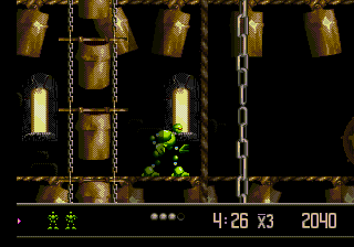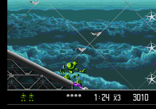Soyons clairs dès le départ : je ne suis pas homosexuel, Attendez, non, ce n'est pas ça. Ha oui : le fait est qu'avant tout, Vectorman est un Run 'n' Gun tout ce qu'il y a de plus classique dans la forme. L'équation reste inchangée : personnage + adversaire= coup de plasma dans le museau. Une simplicité dont découle tout son efficacité. Moi gentil, toi méchant, moi tirer, toi petit nuage de particules. Mathématique simple. Pour autant, ce que le jeu ne renouvelle pas sur la base, il le compense allègrement avec le reste.