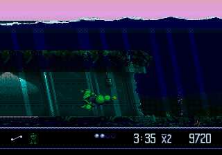 Vectorman est un modèle qui attirera toutes les ménagères soucieuses d'efficacité : il est multi-fonction. Tout au long du jeu, vous aurez la possibilité de vous transformer pour surmonter un obstacle ou tout simplement pour le fun. L'ami robot peut se changer, pour une durée limitée, en machines aussi variées qu'une voiture, un véhicule marin, un marteau-piqueur ou même un bombe (concept). Plus accessoires qu'autre chose, ces options vous permettront la plupart du temps de débusquer des passages secrets pour vous goinfrer de bonus. Et de faire le con avec votre androïde. Gogo gadgeto robot. A ceci, viennent se greffer des options plus classiques qui vous permettront de faire bouffer du proton de façon plus efficace. Les amateurs de Contra seront même en terrain connu : du tir automatique, en mitraille, au flanc. Rien qui ne transpire d'une originalité folle mais peu importe, le déroulement reste d'une redoutable efficacité.