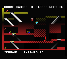 En réalité, je ne saurai dire pourquoi King's Valley reste ancré dans ma mémoire. L'excellent principe qui reprend le meilleur de Lode Runner et Montezuma's Revenge, le challenge omniprésent tout au longs de ces quinze niveaux, l'ambiance palpable malgré la faiblesse technique, la musique – il n'y en a qu'une mais elle est absolument parfaite – aux accents orientaux, la drogue ou mon aveuglement total pour tout ce qui touche à Konami ? Je ne sais pas. Et si c'était simplement un excellent divertissement ?