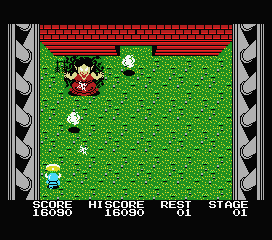 Il n'y a pas de ralentissements à signaler, l'animation des différents protagonistes restant très fluide, même avec une vingtaine d'objets mouvants à l'écran. Sens du détail toujours, certains ont la chance de posséder des petites ombres au sol. Dites-vous bien que tout ceci est une performance remarquable quand on se rappelle que le jeu tient sur une simple cartouche de 32ko. Il n'y a finalement que le scrolling du décor qui peut sembler plutôt... Disons, « brusque et lent ». Car il fonctionne, comme bien trop souvent sur ce standard, par descente de blocs de décors. Heureusement, le rythme de l'aventure cache ce petit défaut.