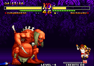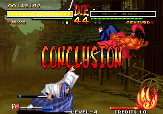 NDLA : La fatality (ou Zetsumei Ôgi) décrite ici n'est disponible que dans la version « Special » de Samuraï Shodown (Spirit) V Special. SNK Playmore a en effet décidé de censurer la violence dans leur jeu d'un côté, tout en laissant les cris de douleur et d'agonie de l'autre. Pour un jeu sorti en 2003, tendre logique, quand tu nous tiens. Pour jouer à SS V special avec les fatalities, il faudra posséder la version d'origine, dite unfixed, et de débloquer ces coups à l'aide d'un Universe BIOS.